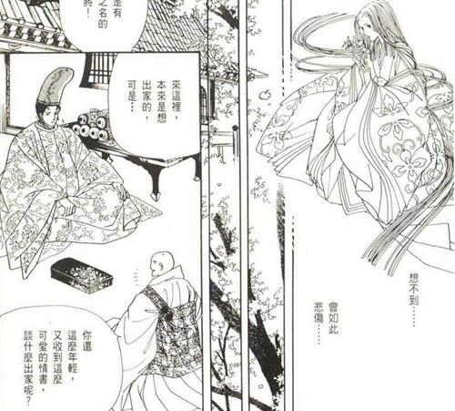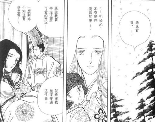 (图片来源[2]:桐壶帝过世,源氏仕途不顺、情场失意,屡有出家之念,却放不下紫姬)