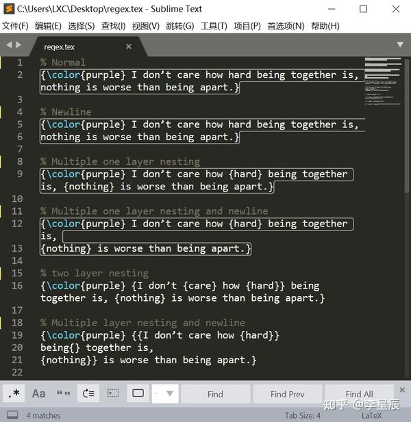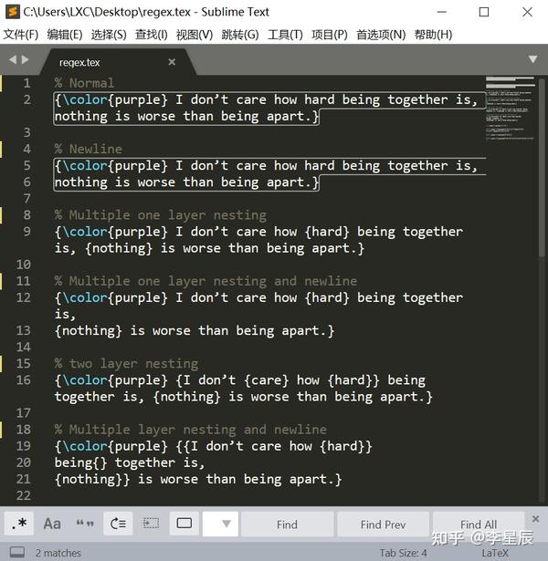 我还尝试了 正则表达式30分钟入门教程 中的“平衡组/递归匹配”,这时候Sublime直接报错了,合理怀疑Sublime对堆栈的支持并不好。