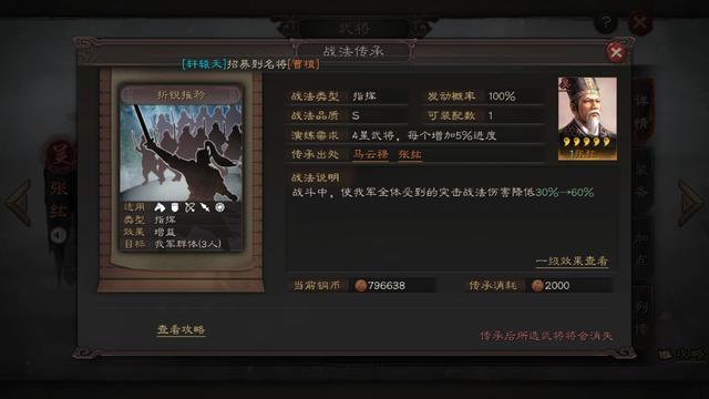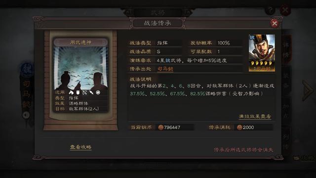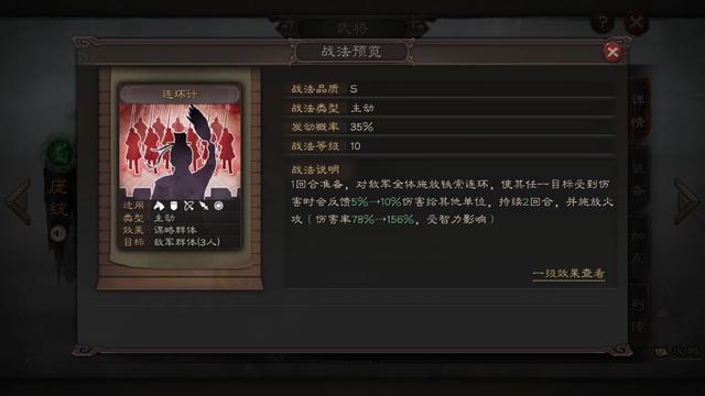 推荐指数:四星。战法触发效果尚需实验。
