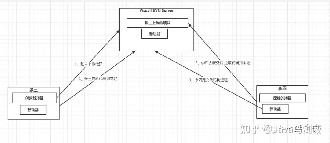 SVN(subversion),据悉SVN的作者,实际上就是以前 CVS中的一个开发者,后来出来自己去另开发写了个SVN。SVN后台替代了CVS(比例相对来说 比较少了)。SVN安装后,会有公共地址VIsuall SVN Server的url。导入后会在其项目文件下创建.svn,用户开发小组在修改编写好自己所负责的模块后,将代码保存到自己的.svn中,再通过.svn这个文件到SVN Server提交上传和拉取文件。