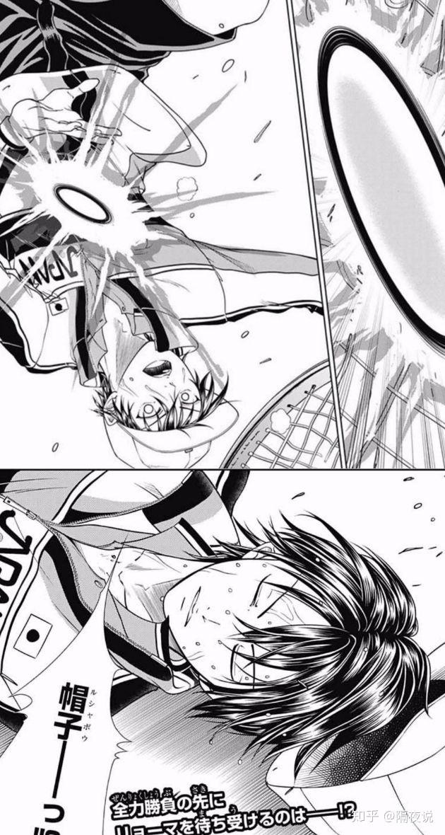 别以为这就完了,不是的,就在最新集更新的《新网球王子》漫画里,我们又再度看到许斐刚老师推陈出新的杰作,让赛场上的龙马和敌方对手均一抽打出 “能够直接将球拍网贯穿的网球” ---