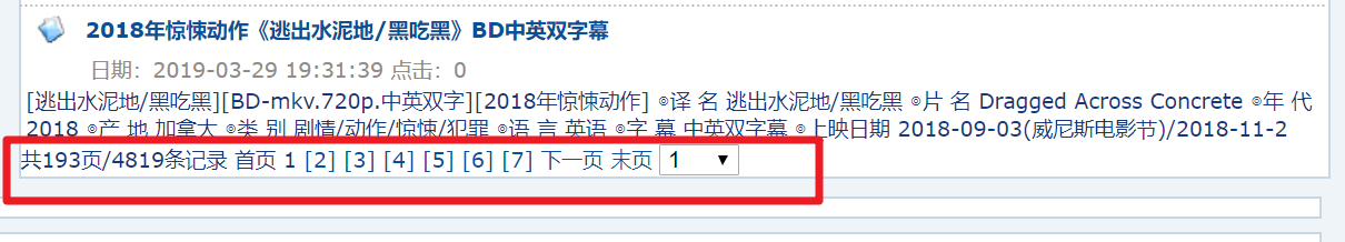 单部电影网址后部分类似于:/html/gndy/dyzz/20190427/58502.html,可以通过增加“电影天堂”网址前部分“ www.ygdy8.net ”组装成完整的单部电影网址