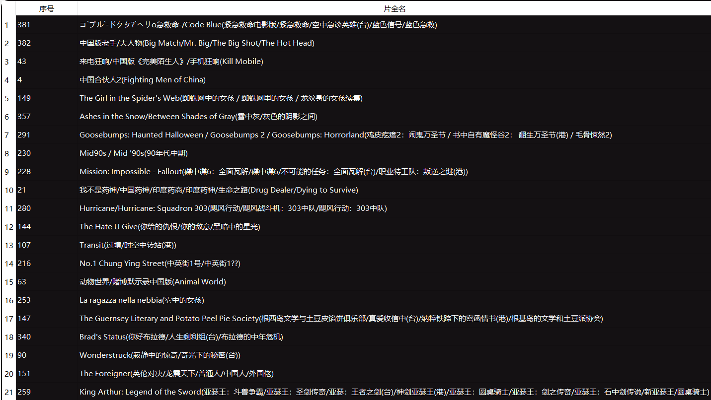 movie_data.extend(re.findall('译 名 (.*?) <br />', html2.text))