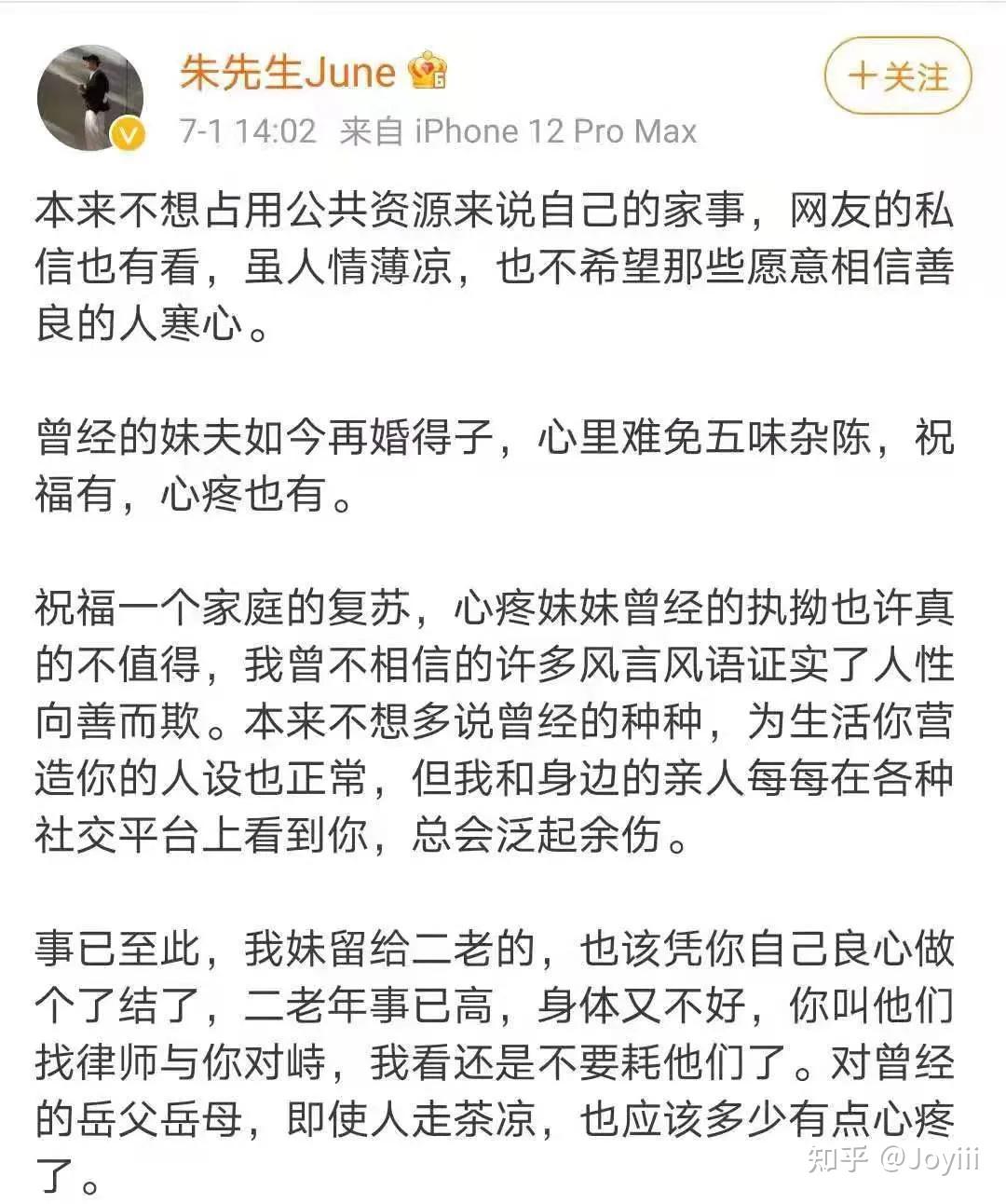 让网友们更气愤的是,就在昨天,他宣布得女的消息发布后不久,朱小贞的哥哥也发了一条微博,内容很长,总结起来,无非3点。
