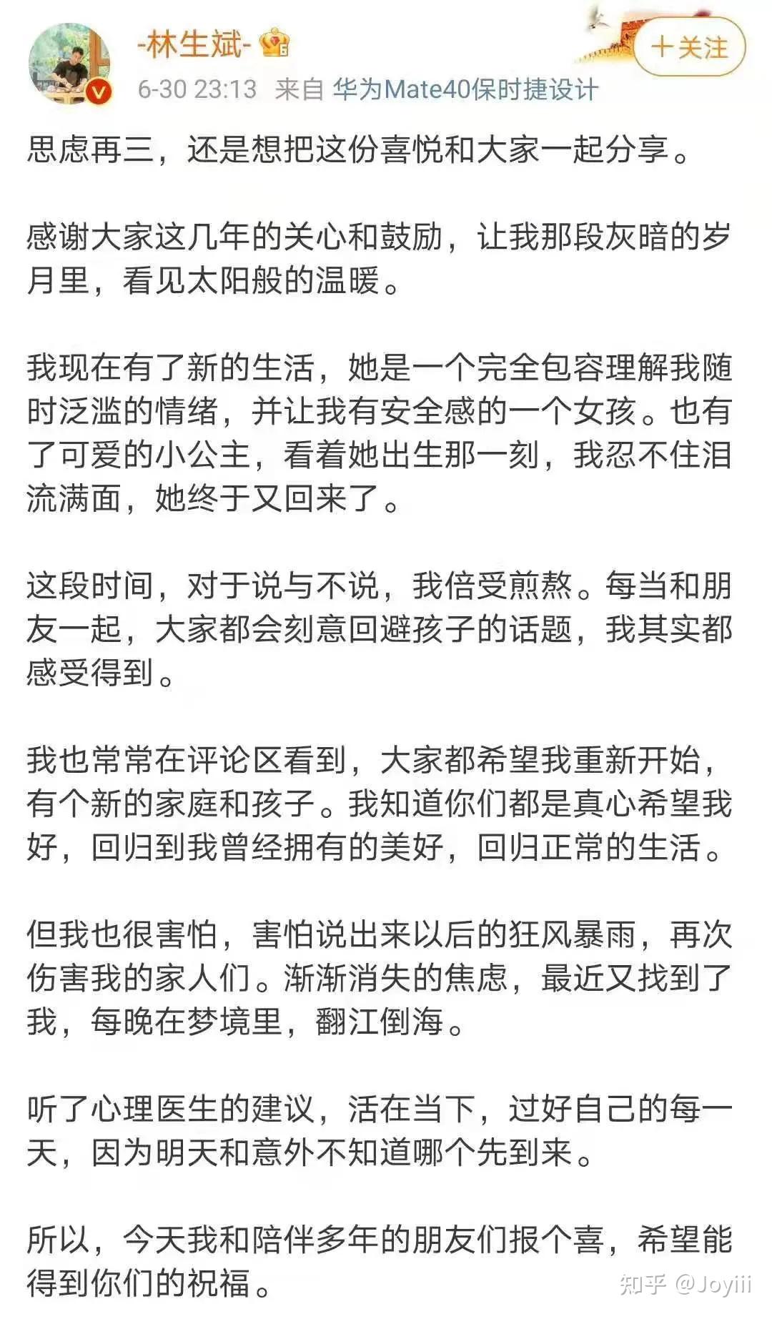 短短半天,3.7万的评论,就已经吵翻了他的微博。 有人为他高兴:“恭喜林爸爸,终于走出来了。”“祝福你,喜得金牛宝宝。”