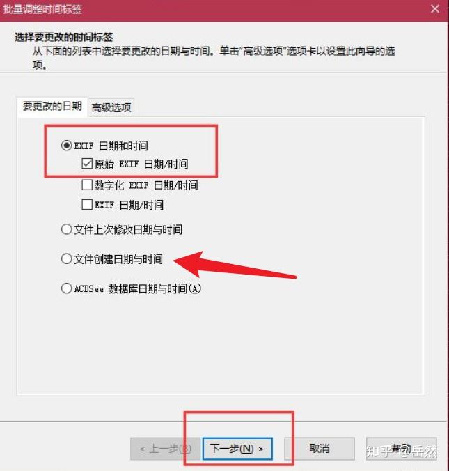 - 第二步将EXIF信息选项中的 原始EXIF 和 数字化EXIF 勾选更改,下一页选项不变
