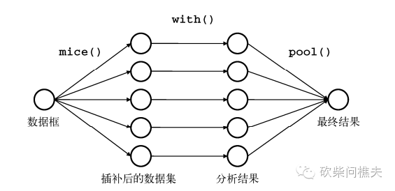 mice():从一个含缺失值的数据框开始,返回一个包含多个完整数据集对象(默认可以模拟参数5个完整的数据集)