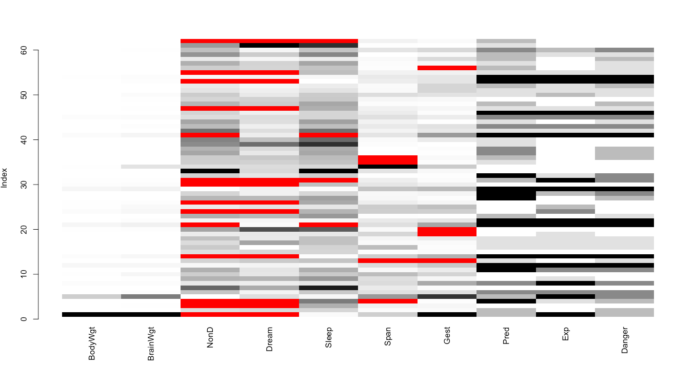 BodyWgt BrainWgt NonD Dream Sleep Span Gest Pred Exp Danger