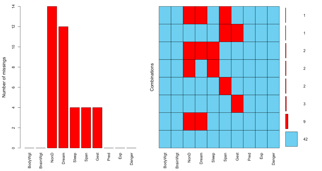 最后一列给出了变量的数目(这些变量存在缺失值)。