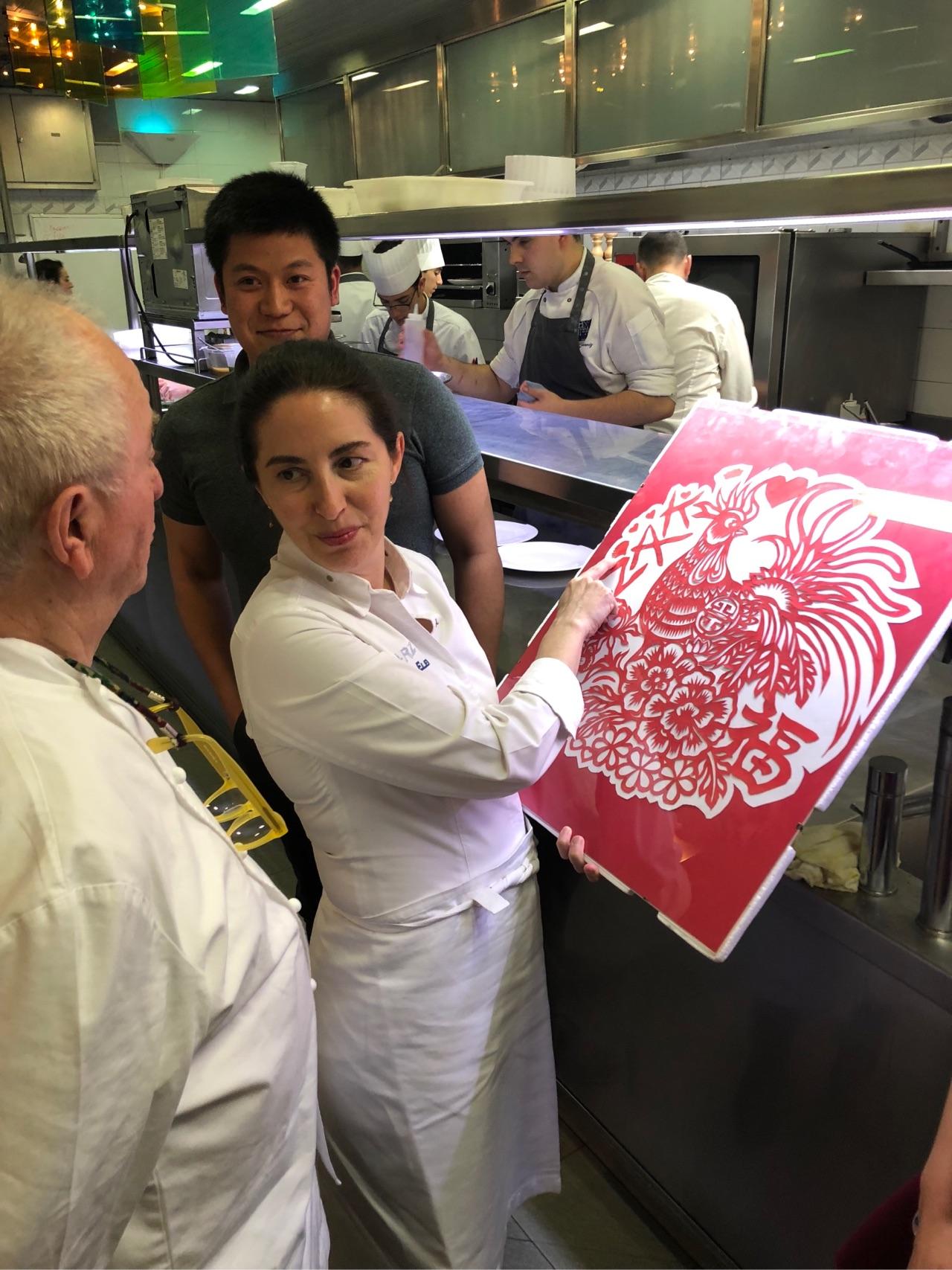 在一个名流云集的场所,侍者们早就练出了火眼金睛,从穿着打扮还有用餐习惯,他们就能看出我们并不是专业的评论家,甚至不是专业的食客,更不是权贵和土豪,但是埃琳娜作为一个从事艺术创作的大师,看到那张剪纸的时候,立刻明白了我的心,得到了灵感,产生了共鸣。我们之间的互动更像是在以礼会友,而不是吹嘘奉承或买卖交易。