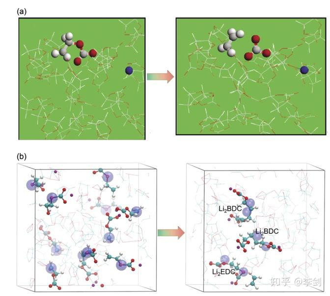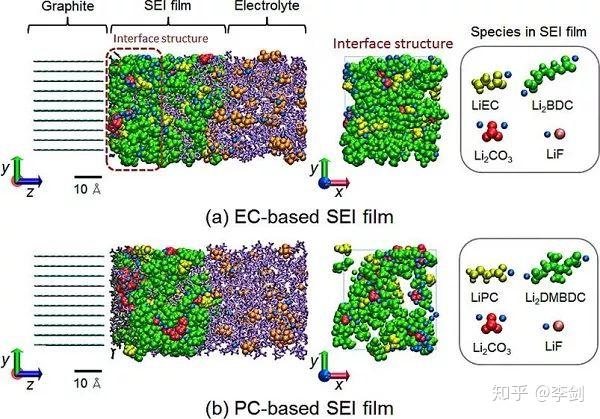 计算电解质筛选的成功取决于这些关键指标。但是,这些描述符主要集中在初始SEI的形成和热力学上。正如我们在“纳米厚的SEI层的构建”一节中讨论的那样,可以描述从电解质还原形成数十纳米厚的SEI的基本理解和计算方法尚未得到充分发展。 因此,尚未确定这些初始还原过程如何控制SEI膜的组成和形态,更重要的是控制SEI膜的性能。 为此,需要开发多尺度的高通量计算方法 。