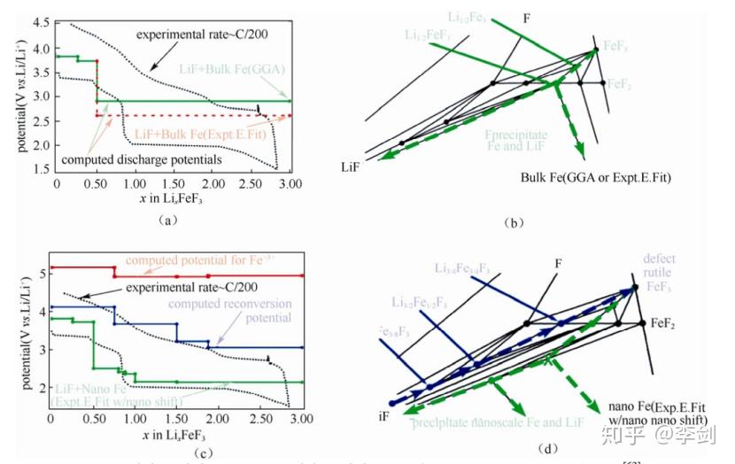需要说明的是,上述计算中,如果反应物为气体,为了方便计算,按照反应式的摩尔计量比计算。 在实际应用中,气体来自于外界,如 O2,有些作者在计算理论能量密度时不考虑气体的质量,计算出的理论能量密度会显著高于考虑气体质量的计算方法。此外,对于固体反应物和产物来说, 由于计算采用的吉布斯生成能一般为不含缺陷的体材料(perfect bulk material)的测量数据 ,实际材料由于存在缺陷和尺寸效应,导致生成能会偏离理想材料的生成能,因此需要考虑各类缺陷能的贡献,如
