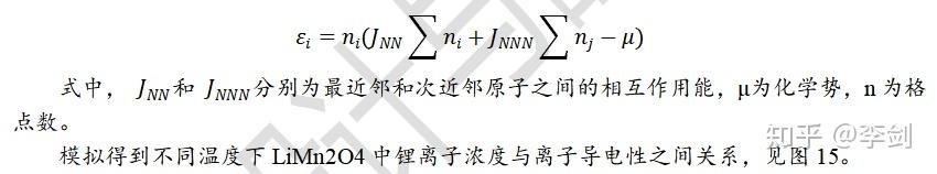 直接利用经典相互作用简化时,不同材料体系和不同体系的位能表达式不同,需要建立合理的位能表达式才能提高模拟结果正确性。Ouyang等计算LiMn2O4中锂离子扩散行为时,将Li+和LiMn2O4晶格中Li+与Mn和O之间的相互作用平均为一个不变的常数,并认为等于Li+在其中的化学势μ,得到每个锂离子格点的位能,可用下式表示: