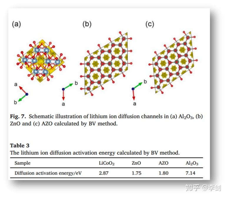采用类似方法,人们也模拟了锂离子在LiMn2O4和SEI膜中Li2CoO3中的扩散系数。这些研究一方面可以直接得到锂离子在材料中的迁移势垒,同时还可以从原子尺度上绘制出详细的锂离子的迁移路径,对理解锂离子扩散的微观机理提供直观的物理图像。