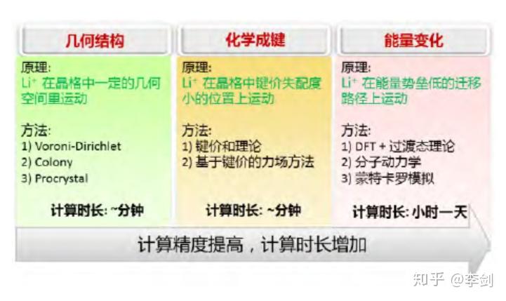 目前针对对于锂离子电池材料的计算方法主要分为如下几类:(1)多尺度计算方法,包括第一性原理、分子动力学、计算相图、相场、蒙特卡洛、分子力场以及有限元等方法;(2)热力学方法和动力学方法。在Meng等人的著作中将第一性原理用于锂电材料的计算技术分为两类:(1)热力学方法;(2)动力学方法。