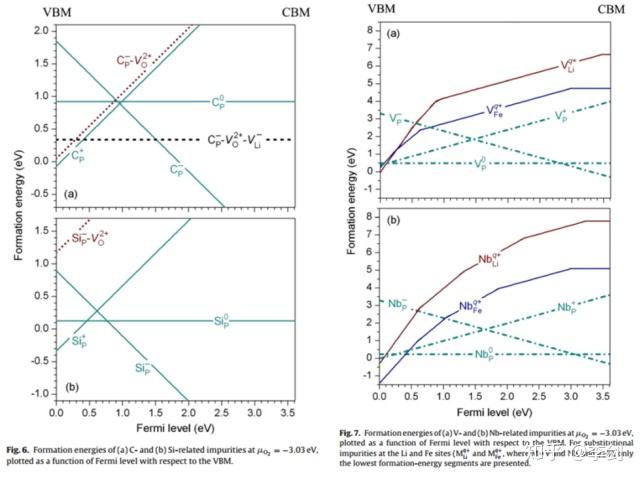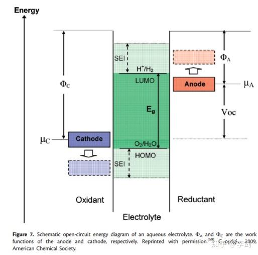 用于电池的电解质材料的选择必须符合一些特定规则,例如低毒性,低成本,低电子电导率和高离子电导率以及不易燃性。良好的电池设计应避免电解液中发生化学反应。2010年,Goodenoug提出,合格的电解质应具有较大的电位窗口,其最高占据分子轨道(HOMO)低于阴极的Femi能级(μC),而最低占据分子轨道(LOMO)则高于阴极的Femi能级。阳极的费米能级(图7中的μA)。如果高于LUMO,电解质将被还原,而当μC低于HOMO时,电解质将被氧化。幸运的是,如果形成稳定的固体电解质界面(SEI)来防止电子在电极和电解质之间转移,则可以缓解此问题。DFT可用于计算候选电解质中的HOMO / LUMO能量,可用于检查电解质与特定阳极和阴极材料的相容性。