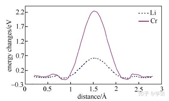 图19 Li与Cr在LiFePO4晶体中沿着c轴方向的迁移势垒