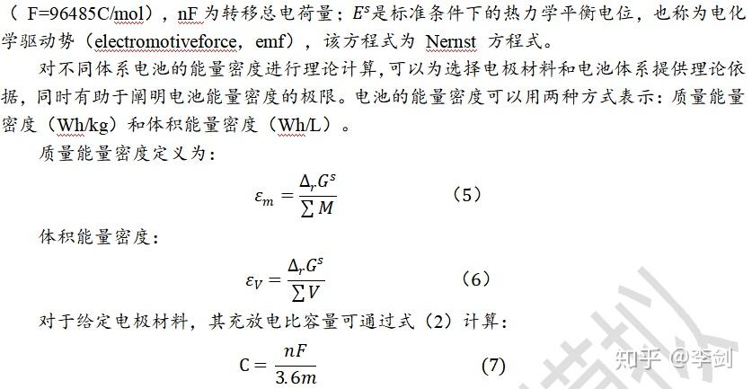 热力学理论计算有助于了解化学储能的理论极限,为估算实际电池的能量密度,开发新的电极材料、电池体系,了解化学储能器件能量密度的极限提供一定的理论参考依据。