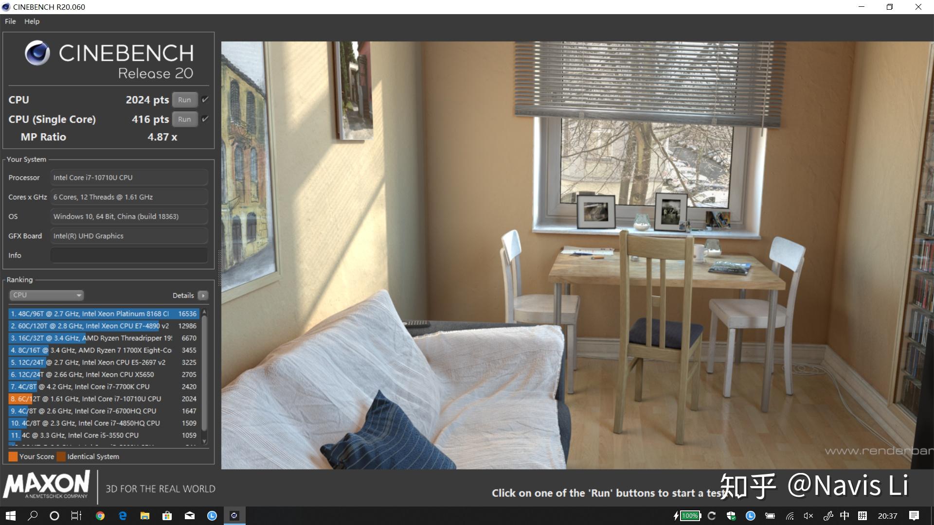 我们这一次测试的 C740, 采用的是 6 核心的 i7-10170U 处理器,这也是今年 intel 为轻薄本设计的平台上性能最强的产品,它在足够的散热支撑下能超过所谓的「标压」i5, 甚至是 i7 处理器。