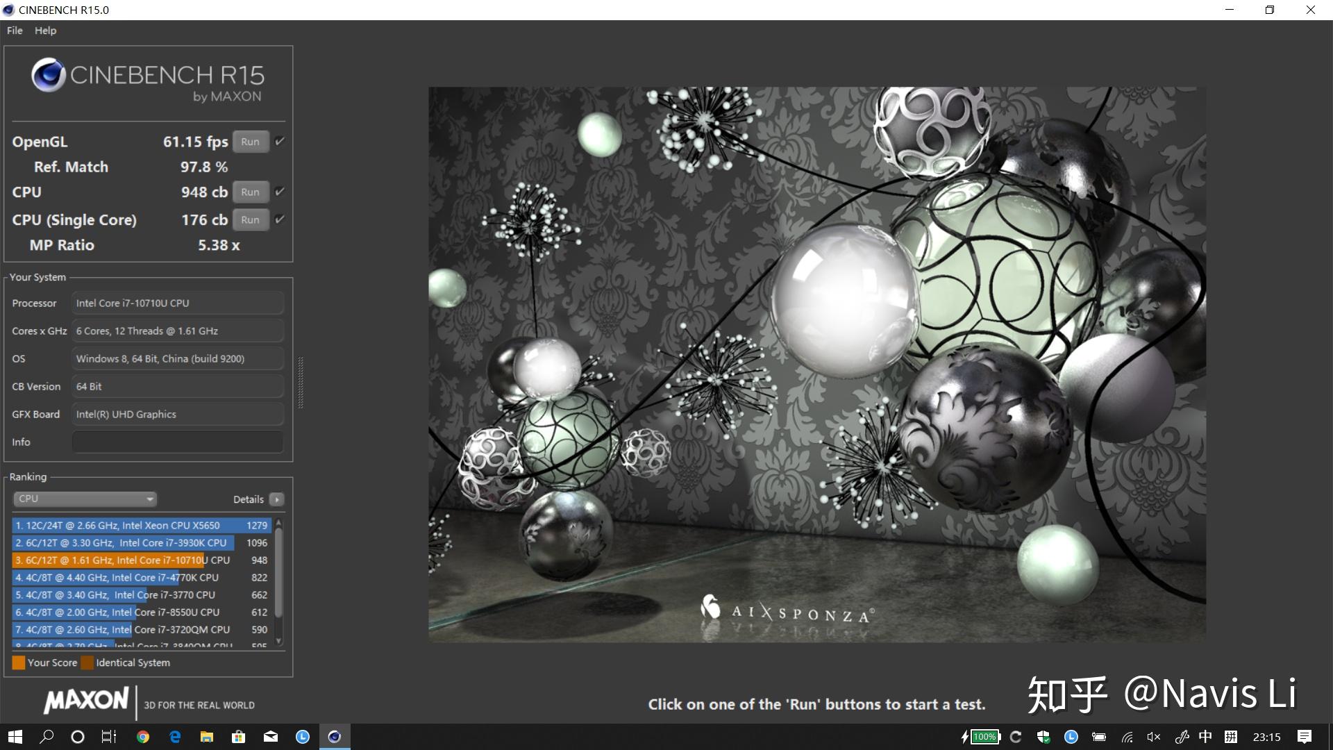 所以我们继续进行了 CINEBENCH R15 的测试,C740 能达到 948cb 和 176cb 的单核性能,已经接近了 i7-9750H 的 85% 性能,由此我们进一步用 R15 进行连续跑分测试: