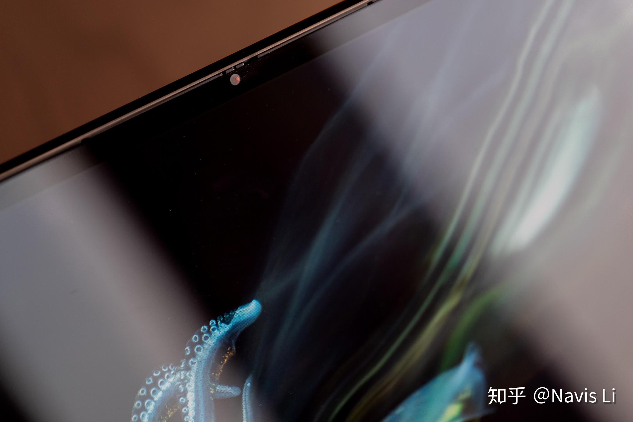 Yoga C740 的摄像头就在机身顶部,不过顶部的边框也并没有因此变宽,同时我们还会发现首先在 ThinkPad 上出现的物理遮挡设计,通过轻轻滑动就能物理遮蔽摄像头来防止隐私泄露,这一点做的很不错。