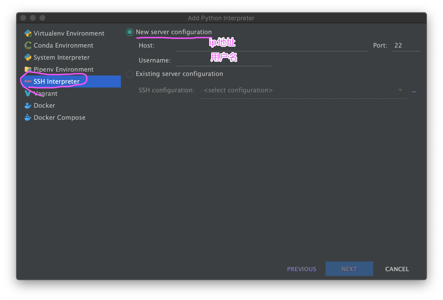 - 选择SSH Interpreter --> New server configuration