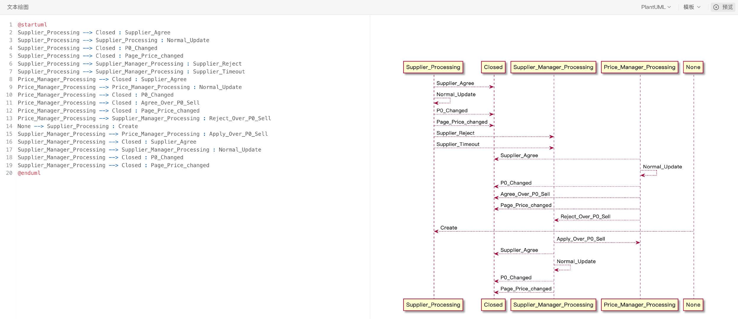 没想到吧,还能通过代码定义好的状态机反向生成plantUML图,实现状态机的可视化。(可以用图说话,和产品对比下状态实现的是否正确了。)