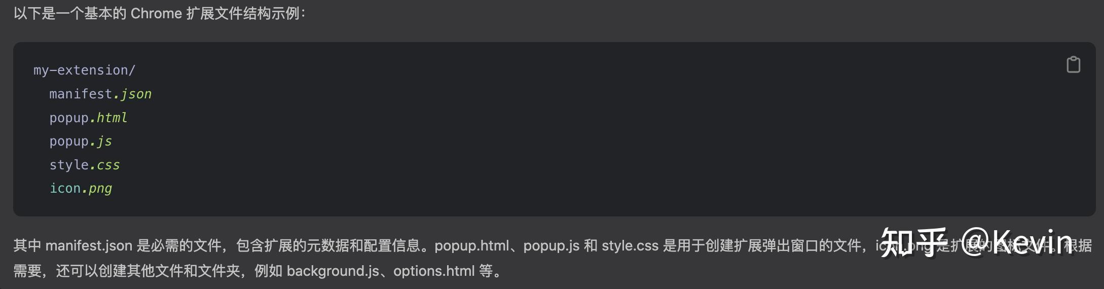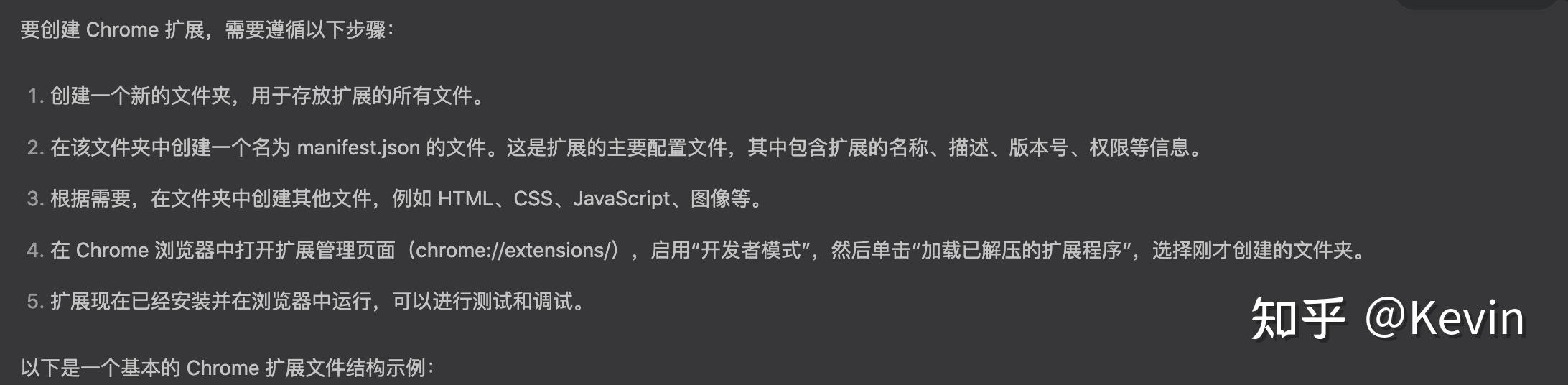 在ChatGPT中输入“如何创建 Chrome 扩展?文件结构应该是什么样的?”