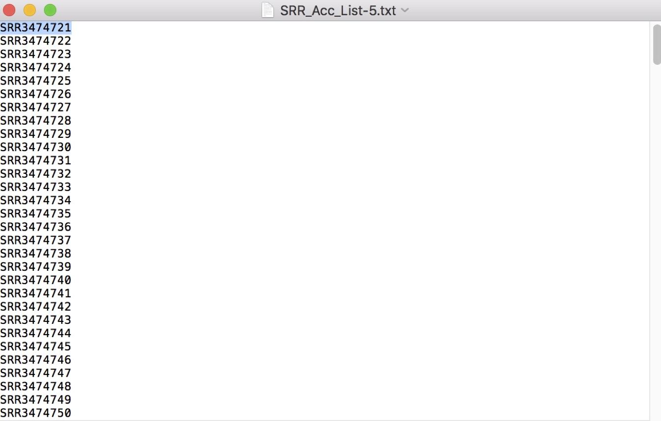 上面命令中SRR后面的数字就是下载文件的代号,大家应该能看懂规律吧。按照👆🌰中的Access list就能够一个一个的下载到你要的文件。