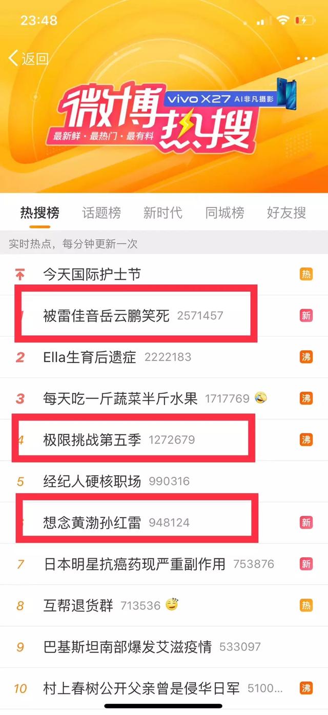 根据CSM 55城数据,《极限挑战》第一期的55城收视率1.81,35城收视率2.01,在昨晚黄金档节目中排名第一。第一期播出后,“极限挑战第五季”、“被雷佳音岳云鹏笑死”、“想念黄渤孙红雷”、“迪丽热巴力气大”等词条纷纷登上热搜,体现了这档国民度极高的综N代的号召力。