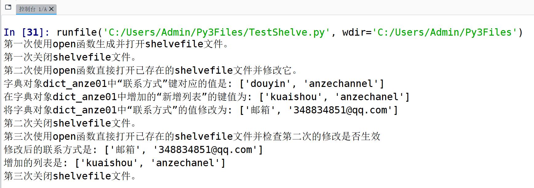 # 使用shelve.open函数将shelvefile文件反序列化为一个字典对象dict_anze01。