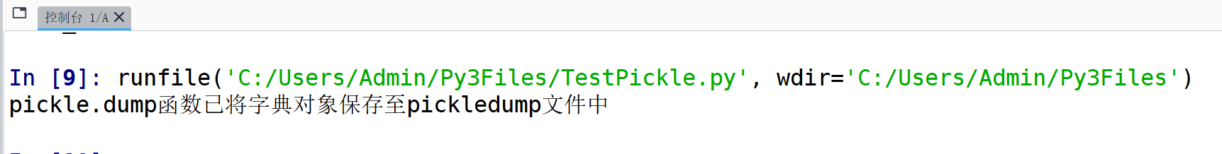 print('pickle.dump函数已将字典对象保存至pickledump文件中')