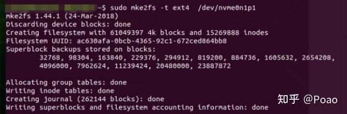 sudo mke2fs -t ext4 /dev/nvme0n1p1