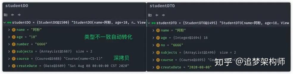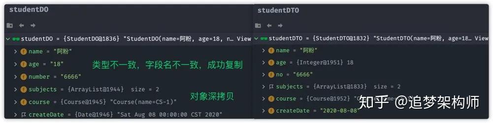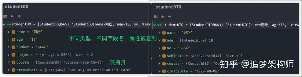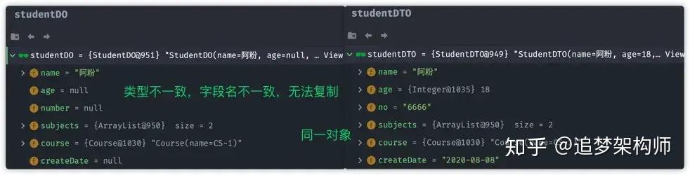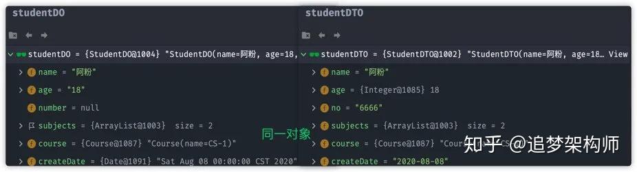 此时对比studentDO与 studentDTO对象: