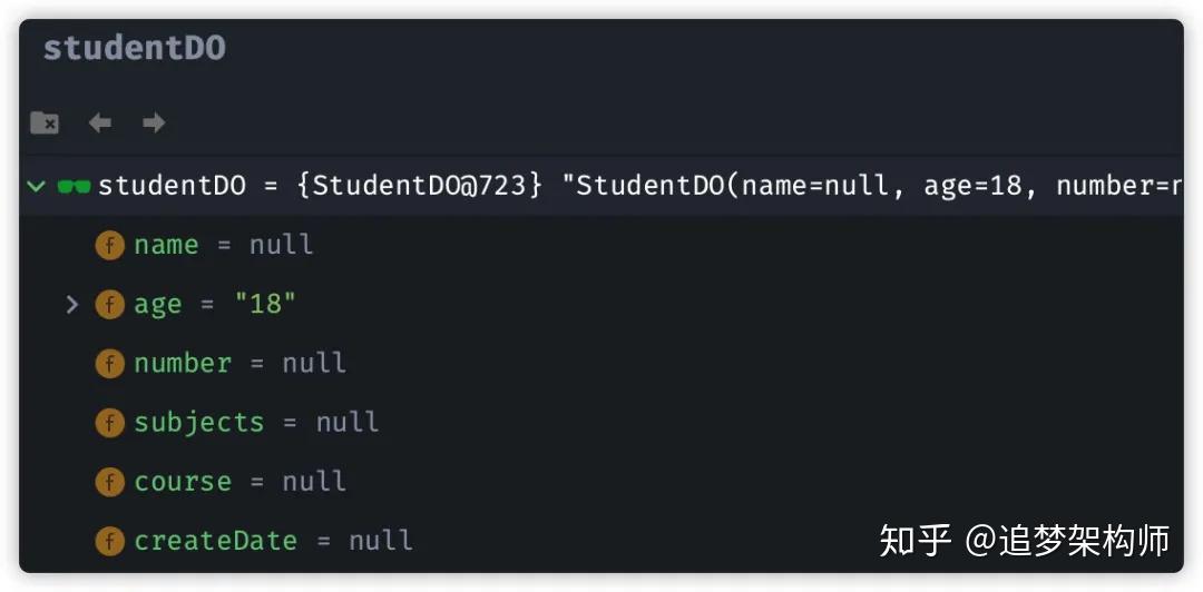 此时,我们观察 studentDO与 studentDTO对象属性值: