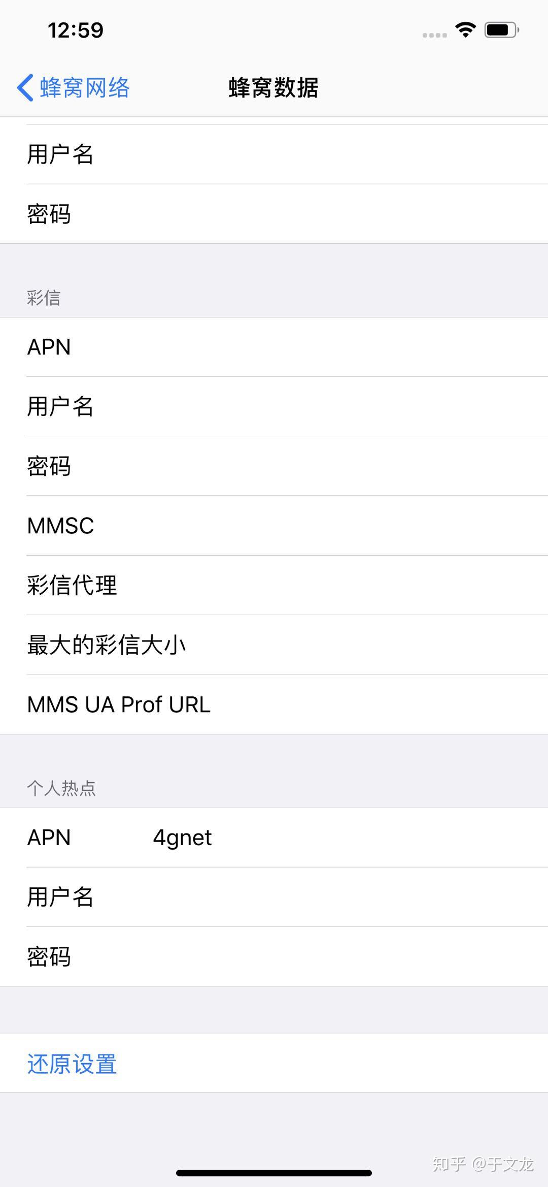 打开你手机设置-蜂窝网络-蜂窝数据 个人热点 apn 输入 4gnet 如下图。