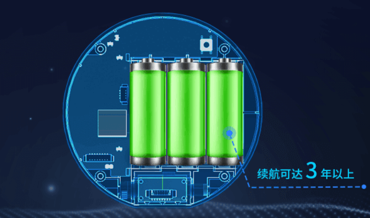 设备基于LoRa®技术,具备低功耗特点,同时采用PIR先行,ToF再判断的工作逻辑,有效降低了运行功耗。设备内置3节4000毫安时ER18505锂亚电池,续航可达3年以上。