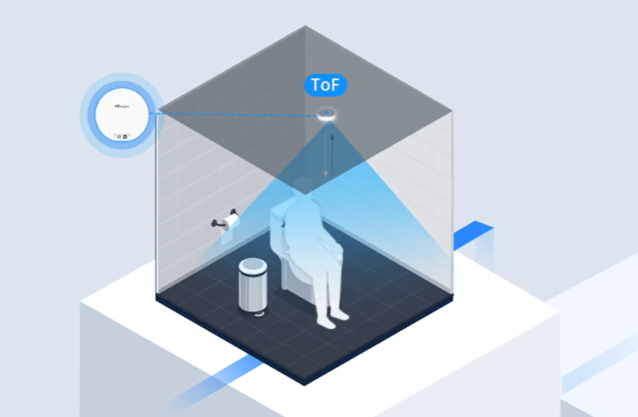 星纵物联VS330卫生间占用传感器创新性地融合了ToF(Time-of-Flight)主动红外测距和PIR人体红外感应两种检测技术,不仅解决了传统方案中静态人体无法识别的问题,还有效降低了功耗。双技术相辅相成,大大提高了设备的检测准确率。