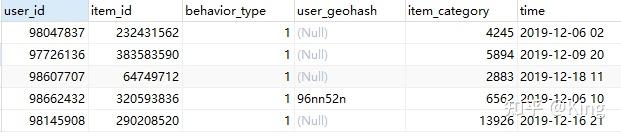 behavior_type INT ( 1 ),-- 用户行为类型(1-曝光;2-购买;3-加购;4-收藏)