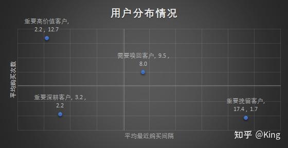通过RFM模型中的⽤户最近⼀次购买时间、⽤户消费频次分析,分拆得到以下重要⽤户。