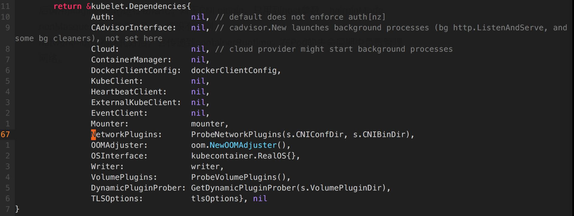 - 通过构建kubeDeps对象获得NetworkPlugins信息;kubeDeps对象的数据结构NetworkPlugins是调用方法ProbeNetworkPlugins收集所有Network Plugin;