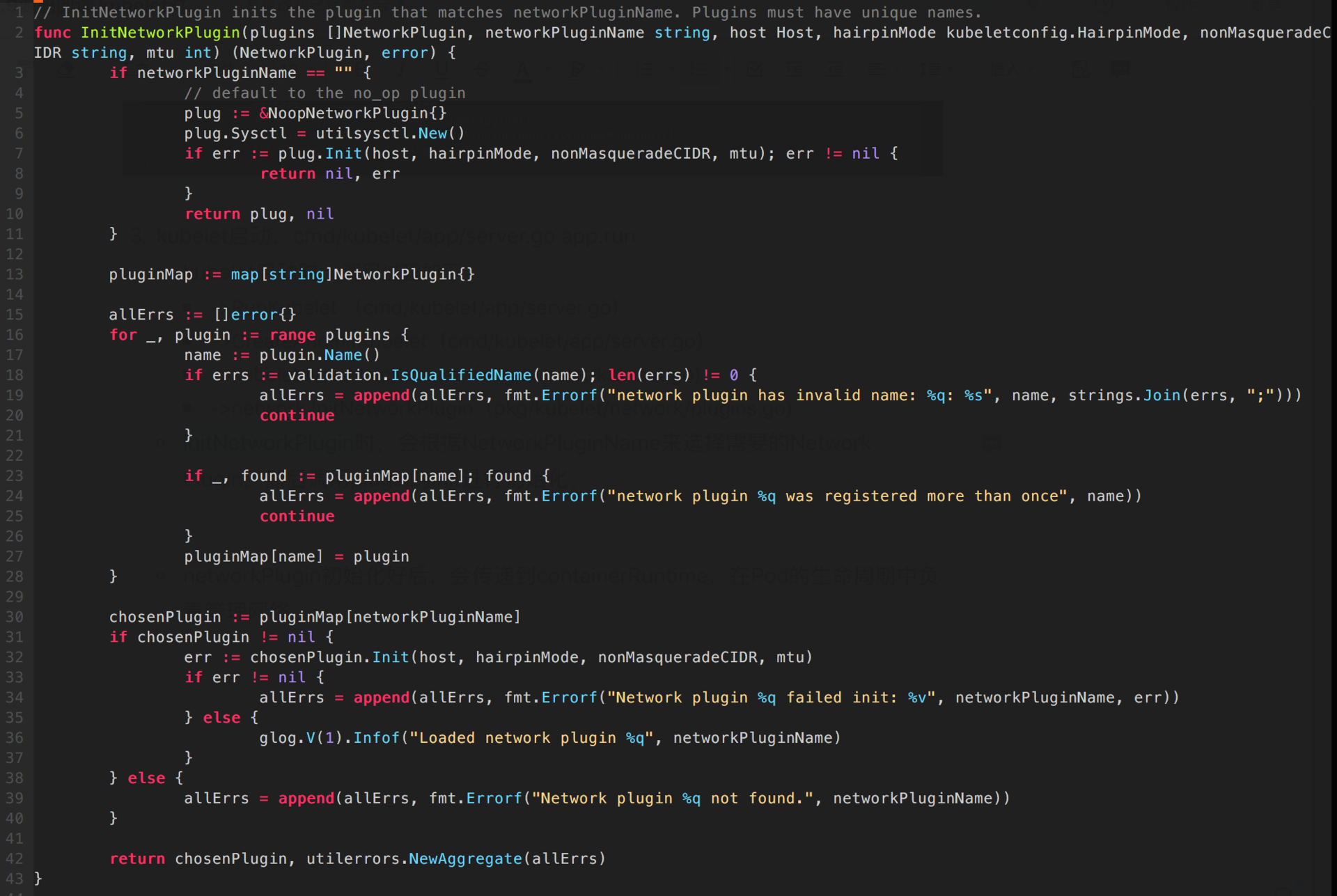 - ->network.InitNetworkPlugin(pkg/kubelet/network/plugins.go)