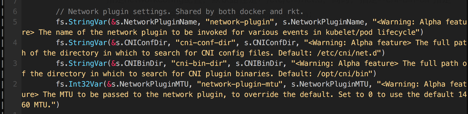 阅读源代码,发现networkplugin除了上面三个参数,还有network-plugin-mtu参数: