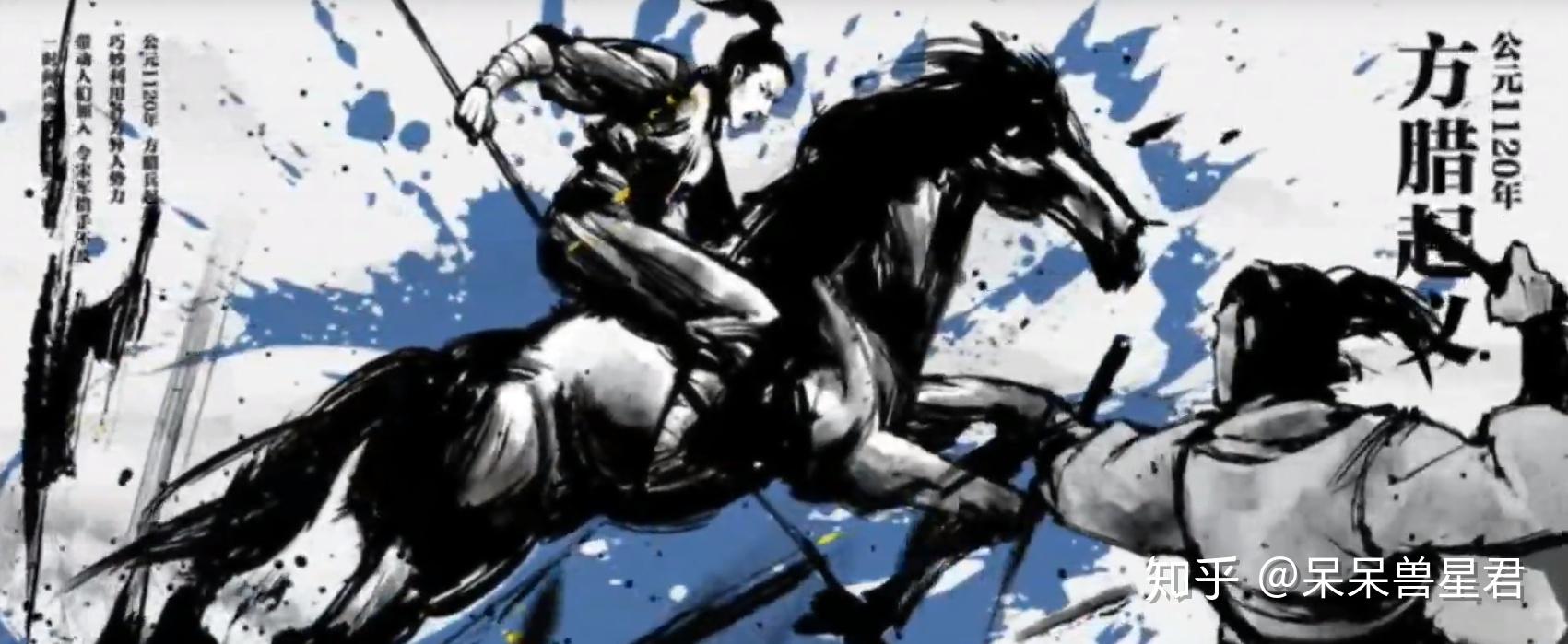 方腊起义-1120年这是单独出现在手游介绍中的一场战争(估计是想联动《水浒传》)按照这一思路,可能在设定中山东宋江,淮西王庆,河北田虎,江南方腊都是具有“异人”力量的团体,不过目前并没有相关剧情,所以就点到为止了;