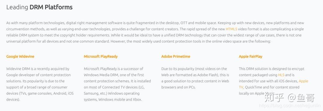 从上图可以看出,现有的成熟的DRM平台并不多,安卓端的话一般使用的是第一个。