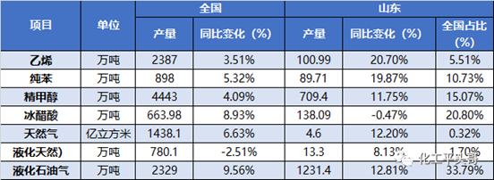 图1:山东地区主要化工品生产情况统计