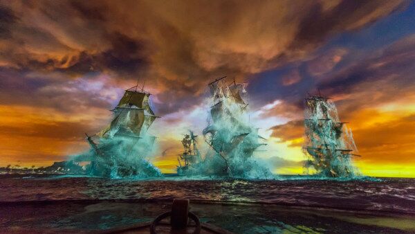 2017年,“加勒比海盗”游乐项目诞生整整50周年,迄今为止,全球有近4亿人在华特·迪士尼亲自设计的杰作中搭乘小舟,绕行在由近40万枚“金币”铺陈的560米长的水道中,体验120多个声控角色,主题曲《呦喉!(我的海盗生活)》成为游客不灭的记忆。