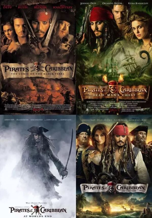 本来,迪士尼电影公司只算拍一集《加勒比海盗·黑珍珠号的诅咒》,没想到2003年公映后,当年即以6.5亿美元拿下全球票房第四的战绩。《剪刀手爱德华》一片的男主约翰尼·德普扮演的杰克船长深入人心。