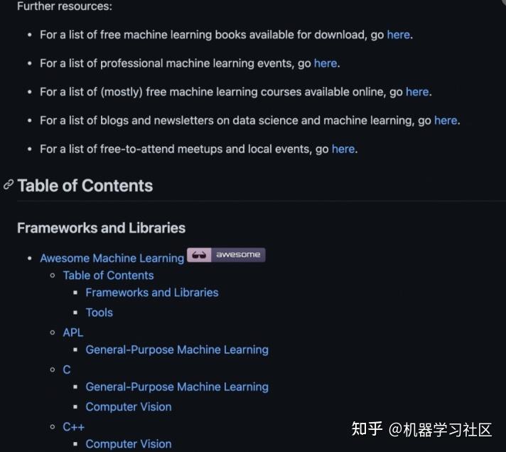 就像名字一样,这个repo包含一个精选的机器学习框架、库和软件列表。它具有用于各种语言和机器学习工具的框架和库的分类列表。