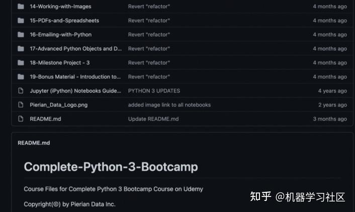 Python 是一种如此流行的语言,以至于人们在听到这个词时不再想到爬行动物。它已成为数据科学、机器学习、人工智能甚至网络开发的首选语言。这个repo包含 Udemy 上最受欢迎、评价最高且完整的 Python 3 训练营课程之一的文件。